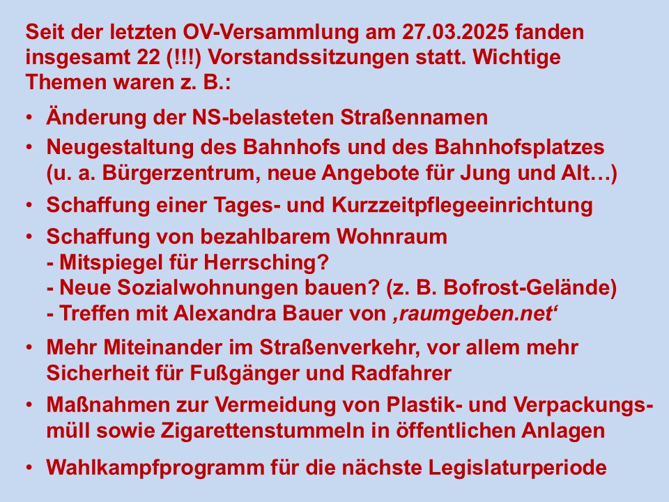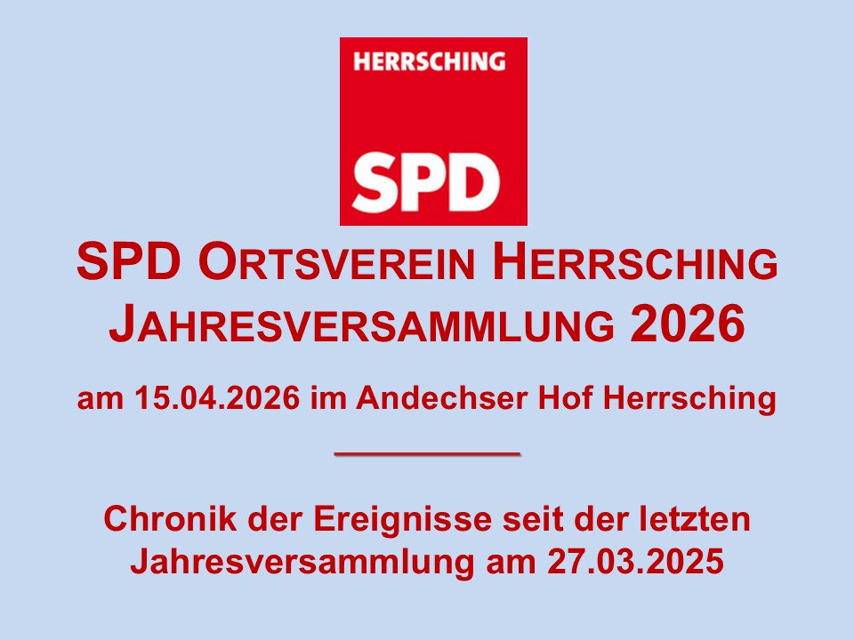 Zu Beginn der diesjährigen Jahreshauptversammlung der Herrschinger SPD am 15. April 2026 im Andechser Hof präsentierte der bisherige Medienbeauftragte Tom Hamaus als Rechenschaftsbericht des Vorstands wieder eine Chronik der Ereignisse der vergangenen 12 Monate (siehe Galerie).