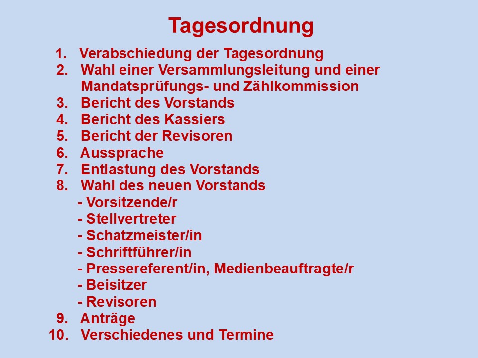 - Wahl einer Versammlungsleitung und einer Mandatsprüfungs- und Zählkommission
